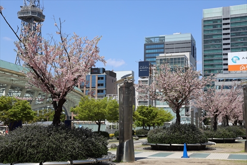栄のオアシス21「緑の大地」で、薄いピンクの花を咲かせる17本の桜 (エ