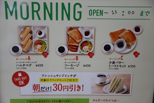 ▲4月8日(火)、カフェ・ド・クリエの、モーニングメニュー