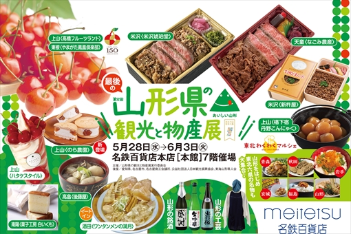 名鉄百貨店7階で「第52回 山形県の観光と物産展」が5月28日(水)〜6月 3日(火)に開催されます。山形が誇る今が旬のさくらんぼをはじめ、米沢牛・ 山形牛を使ったお弁当、いも煮などのソウルフード、新登場のスイーツが大集 結。他にも山形を代表する地酒や良質なワインなどが用意されます。 (2025年5月23日)