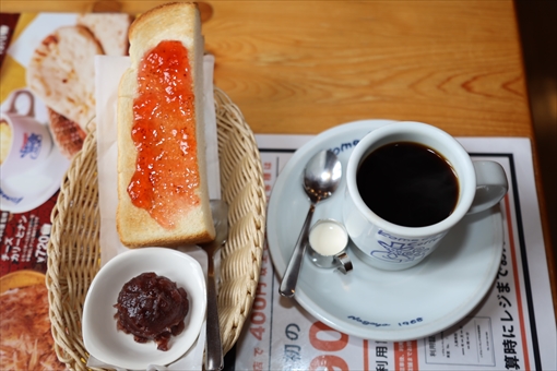 したモーニング「C」は、厚切りトーストに小倉餡もたっぷりで食べごたえが