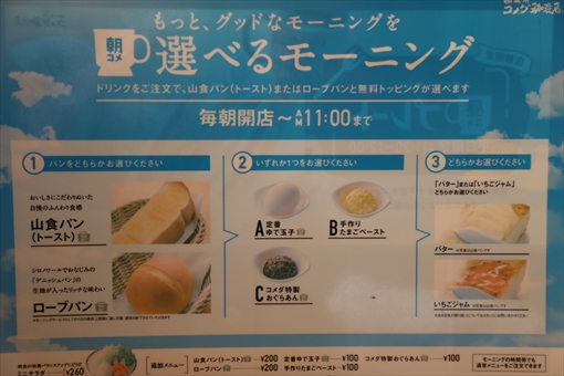 す。コメダのモーニングメニューは、トースト&ゆで玉子の「A」、トースト
