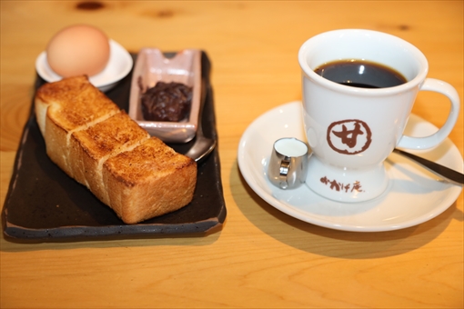 「おかげ庵 茶屋ヶ坂店」 1.メニュー 小倉トーストモーニング(コーヒー+小倉トースト+ゆで玉子) 2.料金 540円 3.場所 名古屋市千種区赤坂町2-34-4 4.電話 052-722-2888 5.営業時間 7:00〜23:00(モーニングは、7:00〜11:00)