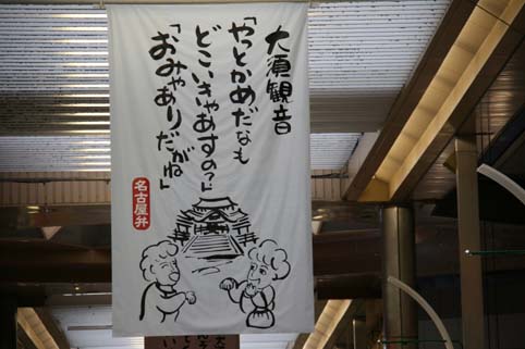 ドに名古屋弁によるガイド垂れ幕が掲示されています。その種類は豊富で、商