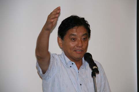 長はお得意の名古屋弁であいさつ。あいさつの中で、言葉が文化の原点、名古