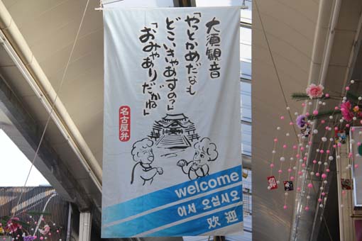 多くの名古屋弁による様々なガイド垂れ幕が掲示されていましたが、新春セー