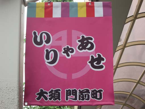 アーケードのない大須商店街門前町通には、「いりゃあせ」のみの名古屋弁の ガイド垂れ幕が歩道に10枚以上掲示されています。 大須商店街は大須観音を中心とする門前町。もともと参拝客目当ての土産物屋 などが発展していったところ。無形の土産物になるかも知れない「名古屋弁」 で、アピールする垂れ幕を掲示しているようです。 「いりゃあせ」。標準語では、「いらっしゃい」といった感じでしょうか。 大須商店街公式サイト http://www.osu.co.jp/